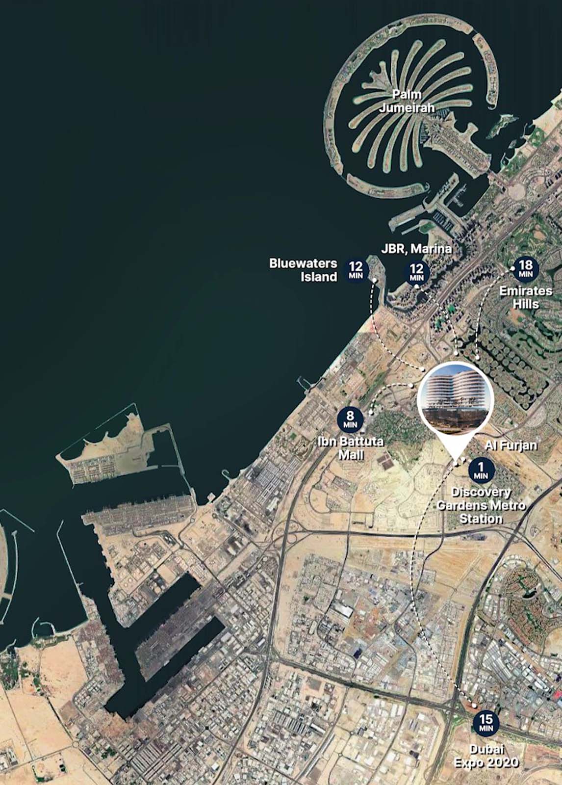 Situated within walking distance of the Miracle Gardens metro station, Trussardi Residences boast a privileged location in a rapidly growing district. Al Furjan is set to become a strategic hub thanks to ambitious infrastructure projects and its proximity to the future symbol of Dubai, Palm Jebel Ali.