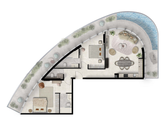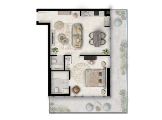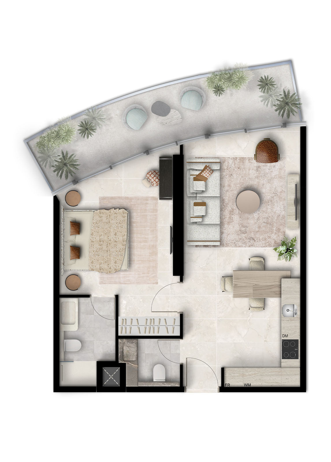 Trussardi Residences come in a diverse range of floorplans: one-bedroom flats ideal for young professionals, two bedroom apartments that are perfect for families, and several with three bedroom homes. All flats have a terrace, some of which are fitted with a Jacuzzi.