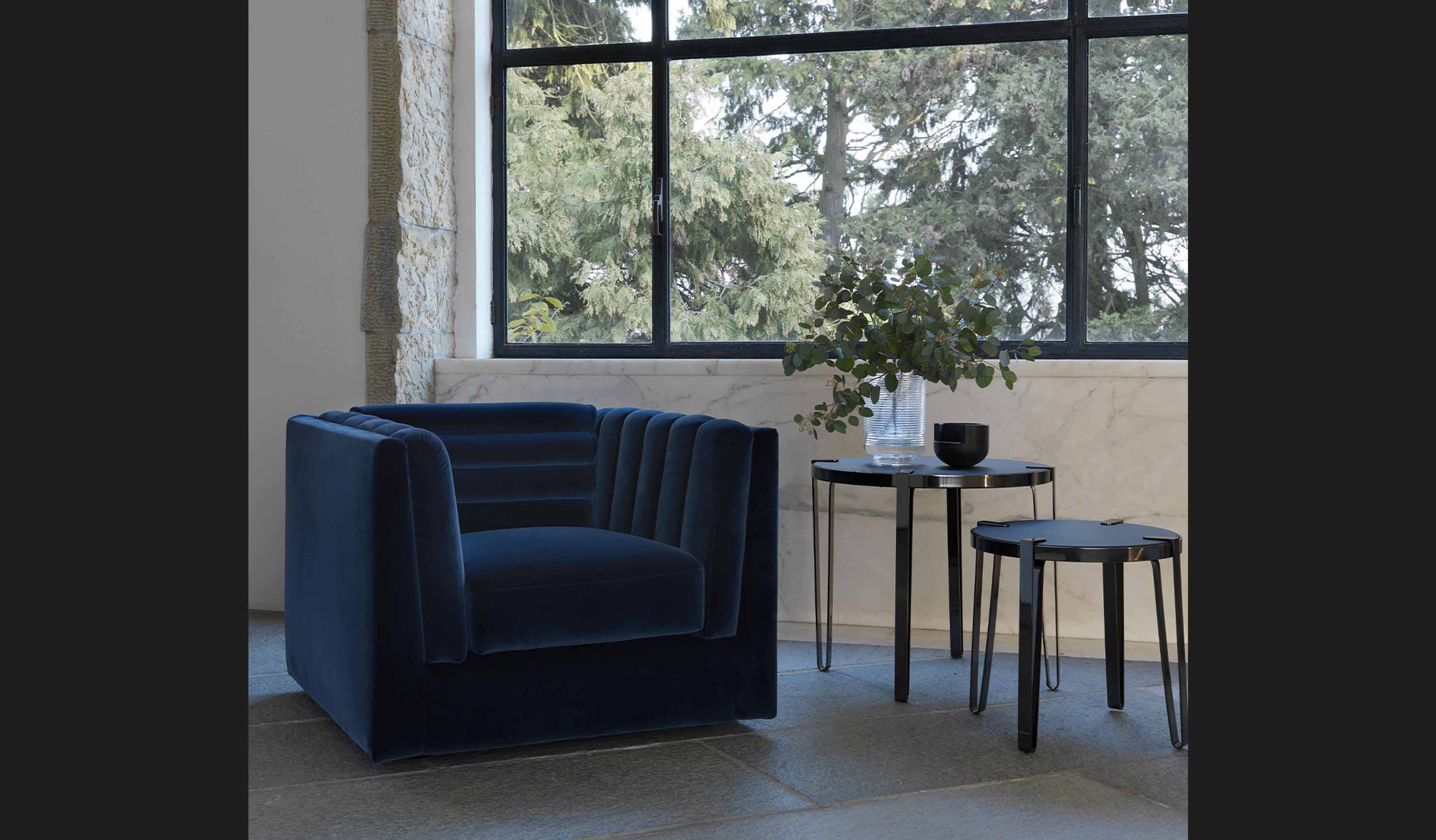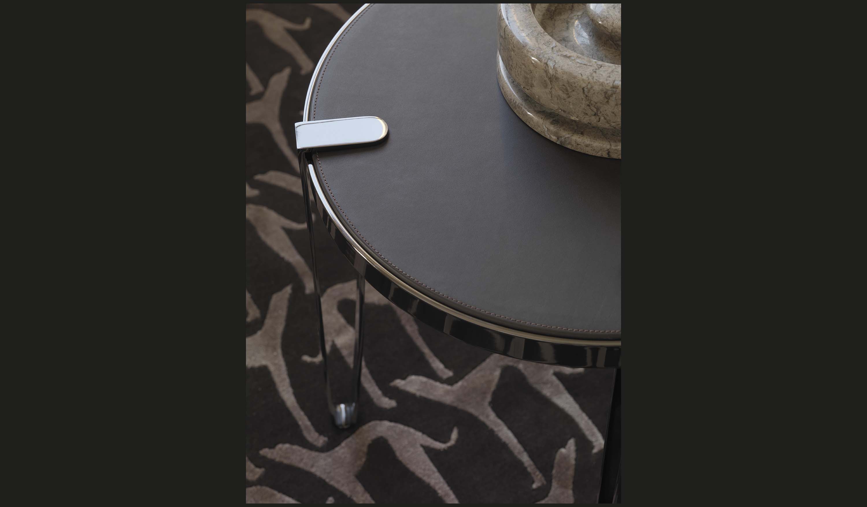 Raffinati ed eleganti, hanno una struttura in acciaio dal profilo leggero che sostiene un piano in legno rivestito in pelle, arricchito dall'iconico logo ovale stampato. Versatili e contemporanei, si adattano con disinvoltura a ogni ambiente, dalla zona living alla camera da letto, disponendosi nello spazio da soli o in originali configurazioni.