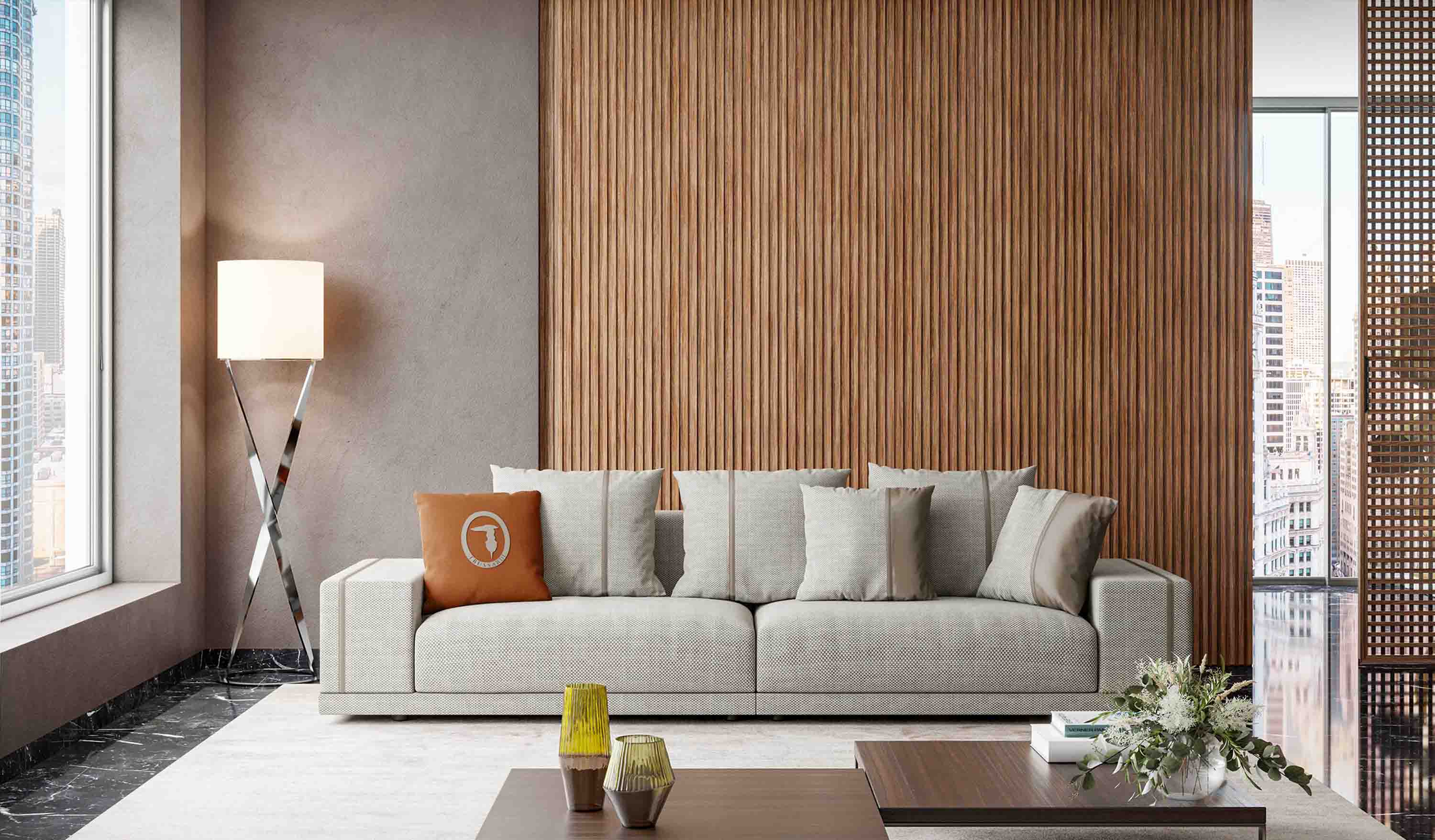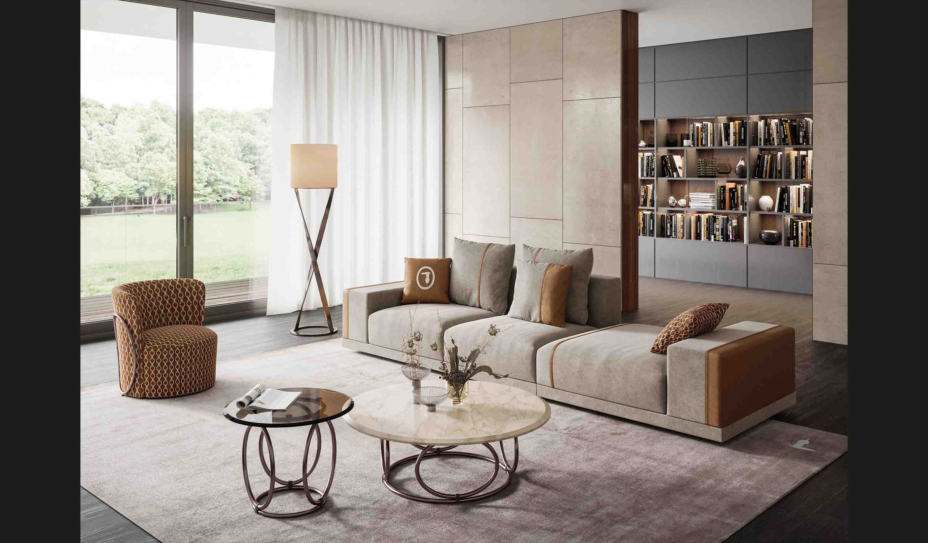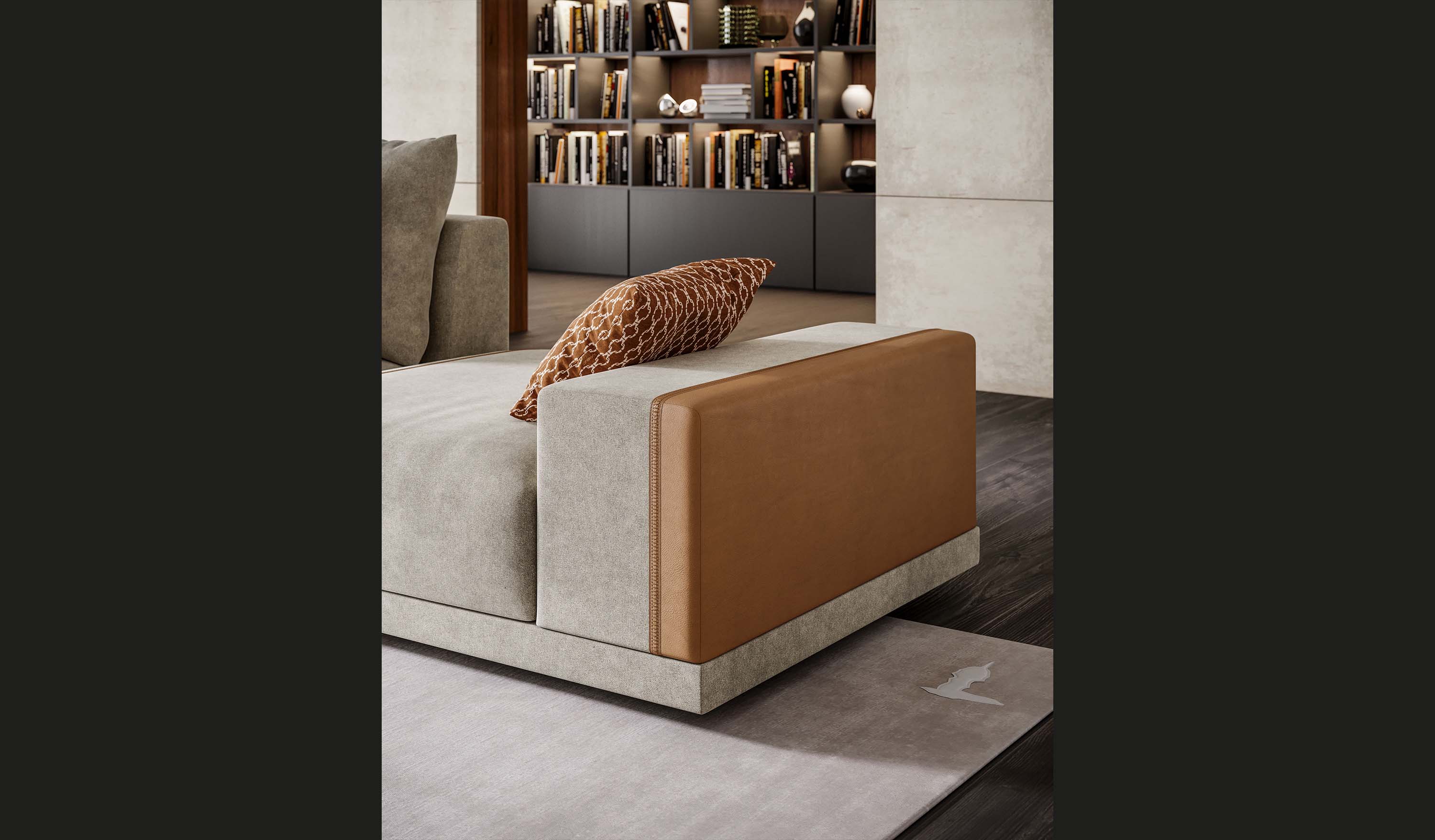 L’inserto in pelle con Chain Stich, è un omaggio alla tradizione sartoriale della Maison, infatti questa particolare lavorazione realizzata in pelle, tipica di alcune borse di Trussardi, è trasposta in questo imbottito per decorare i cuscini schienale ed i braccioli. L’alternanza tra pelle e tessuto rafforza l’estetica contemporanea, rendendo Modergen un manifesto dell’eleganza funzionale firmata Trussardi.