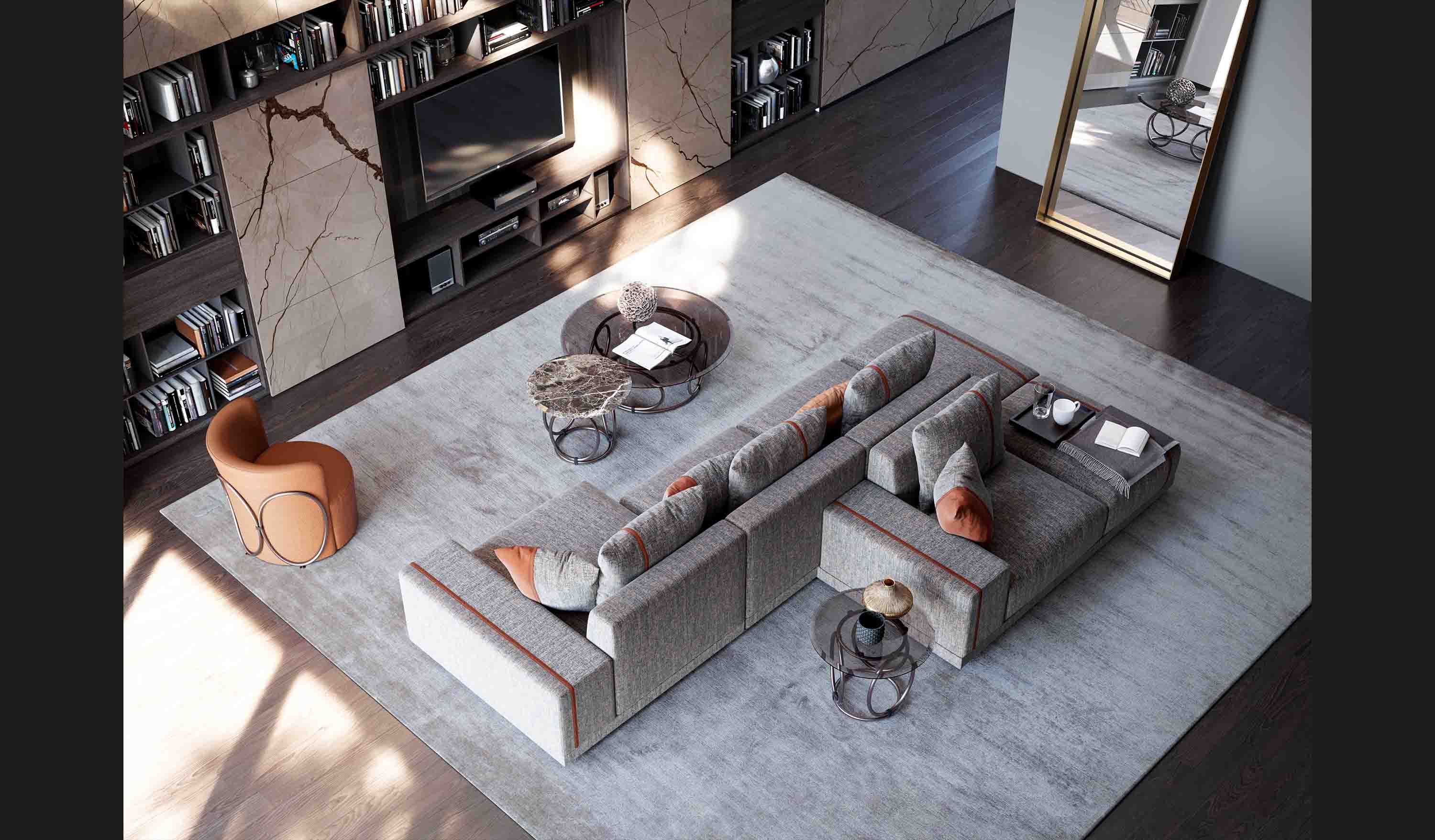 La morbidezza dei cuscini schienali, interamente in piuma, e il comfort delle sedute in poliuretano a densità differenziata, sono garanzia di un’esperienza sensoriale senza compromessi.