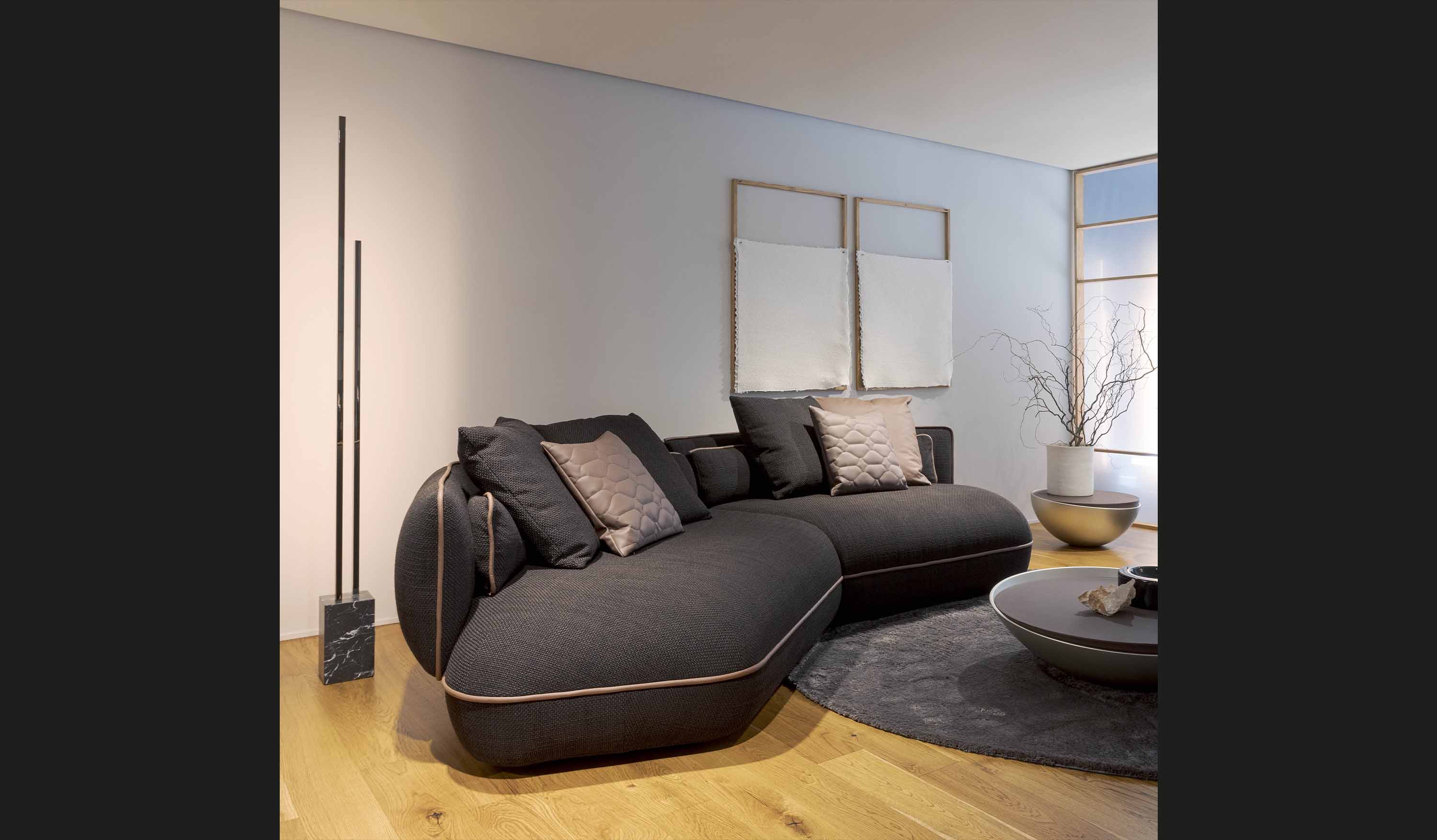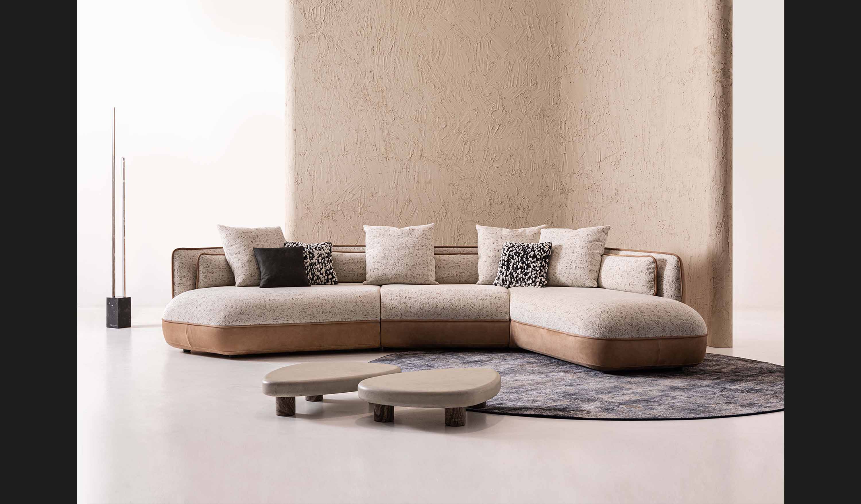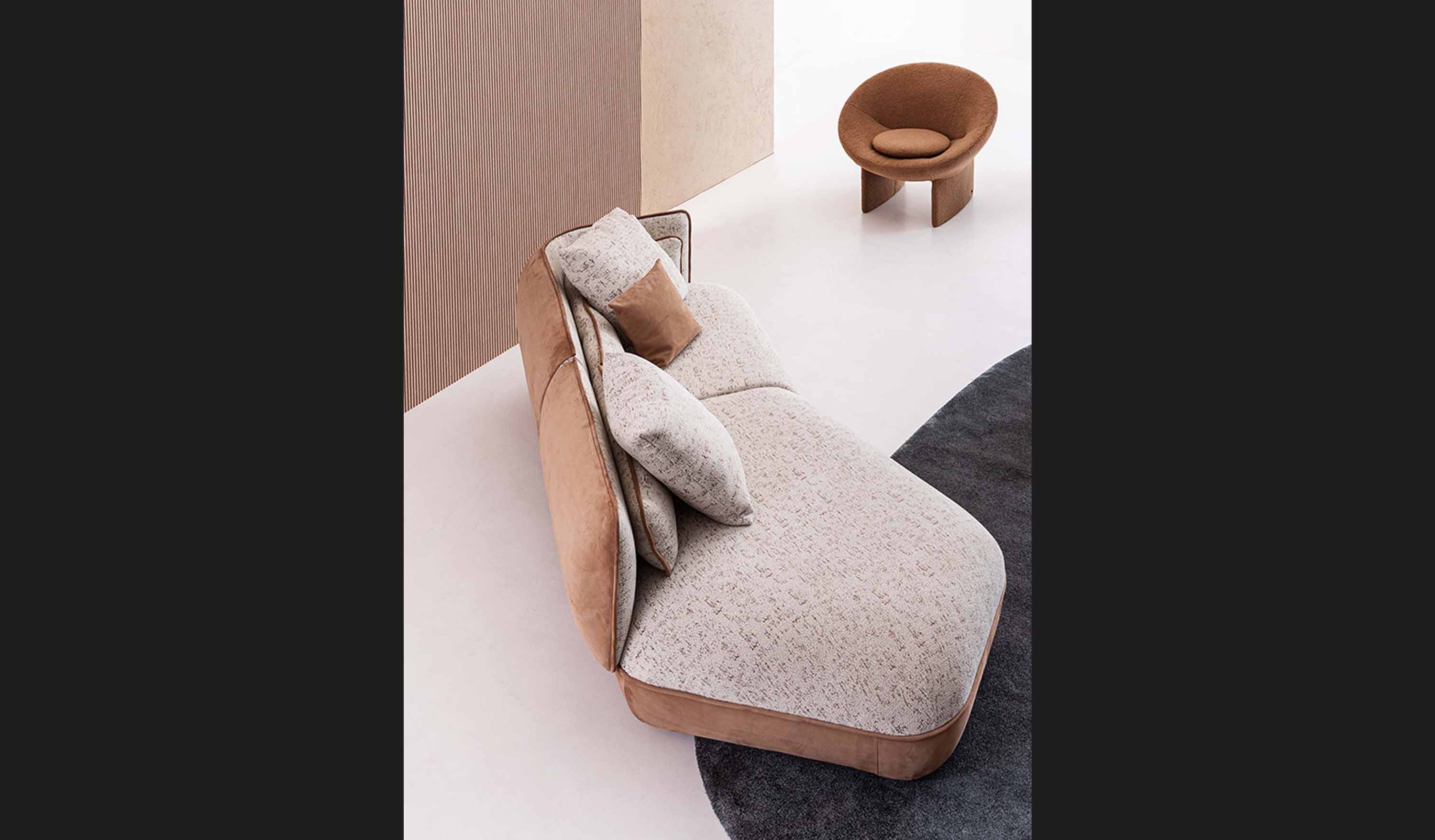 La scelta dei materiali, combinata all’uso della bimatericità, consente di esplorare texture e cromie in infinite possibilità creative. Le imbottiture in poliuretano a densità differenziata, sagomate a pantografo, garantiscono una definizione rigorosa dei profili e un comfort personalizzato che si adatta alle posture più naturali.