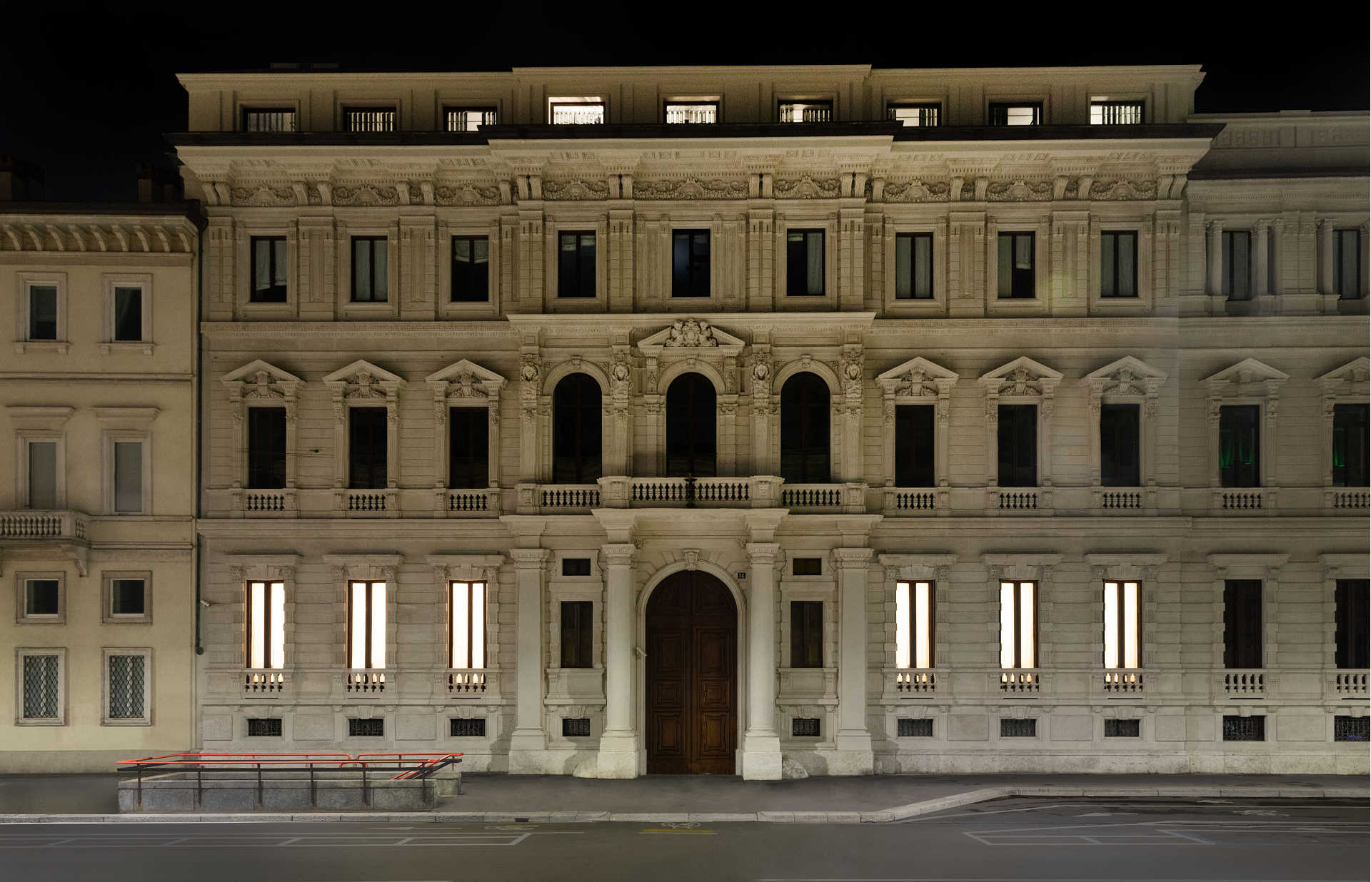 The colonnaded courtyard with its charming cross vaults, together with the immense staircase of the historical late 19th century Palazzo Chiesa, are the preface to a contemporary space of over 500 square metres.