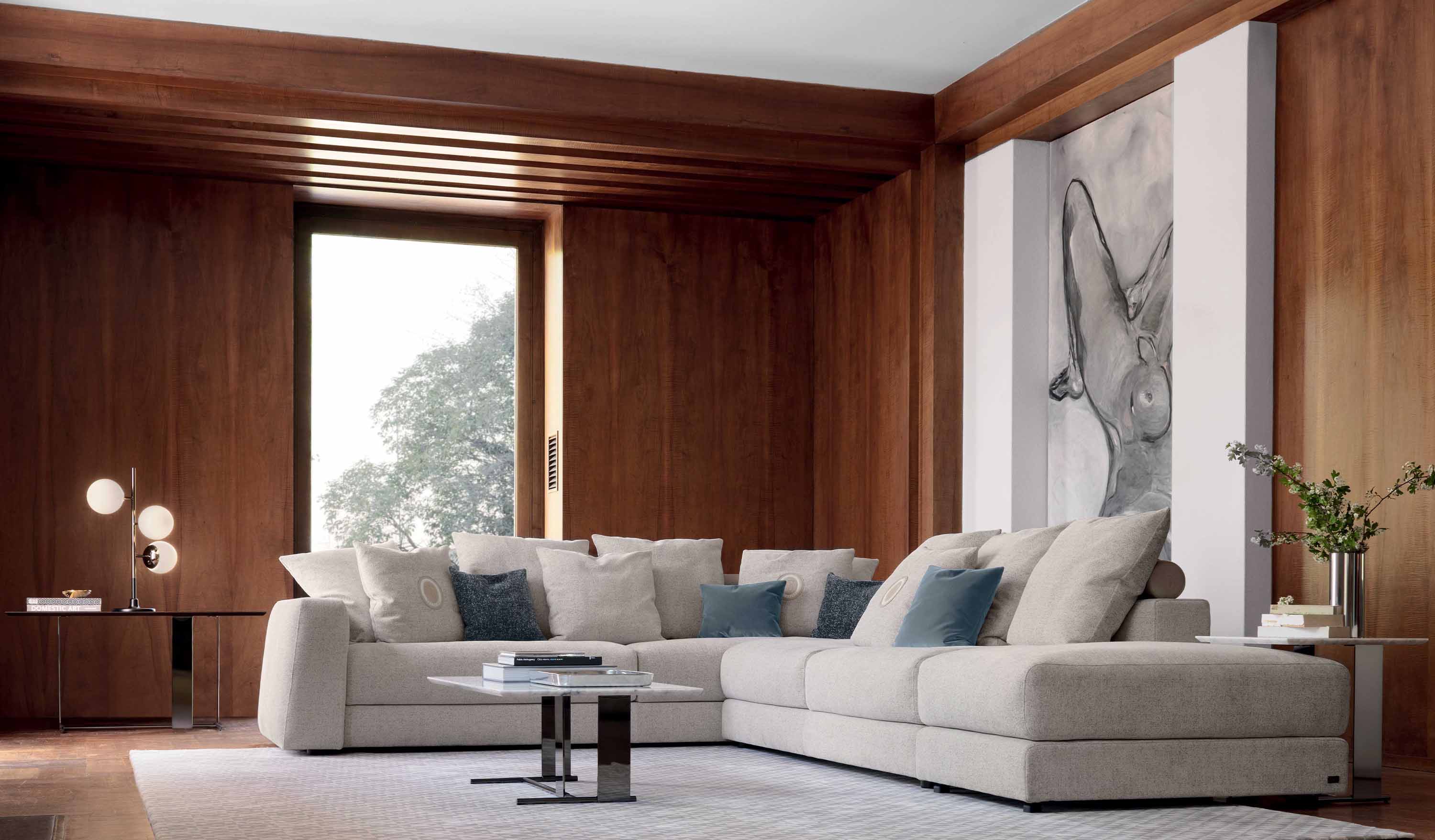 Liam II redefines the concept of a comfortable, modular sofa with its essential lines and a contemporary style, designed for truly refined living rooms. It effortlessly adapts to modern lifestyles, transforming into highly customisable configurations that range from linear sofas to corner compositions or veritable islands, ensuring formal solutions for all furnishing and space requirements.