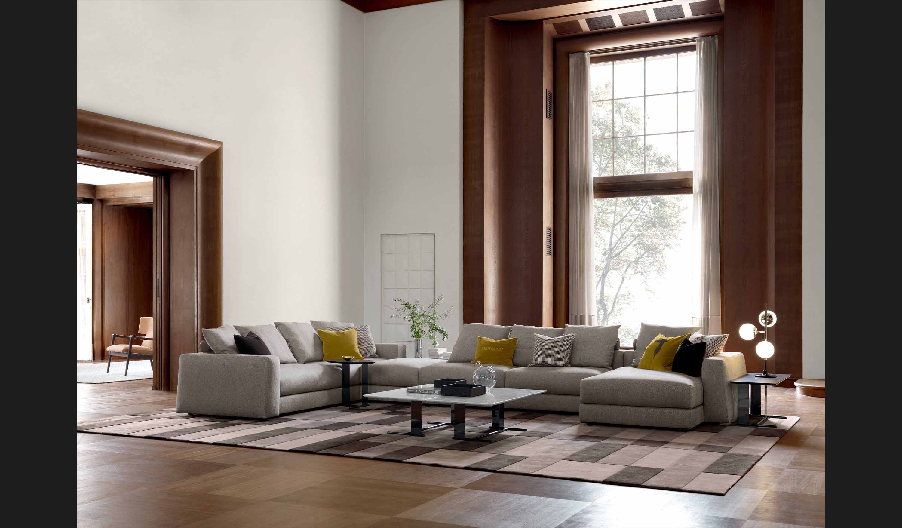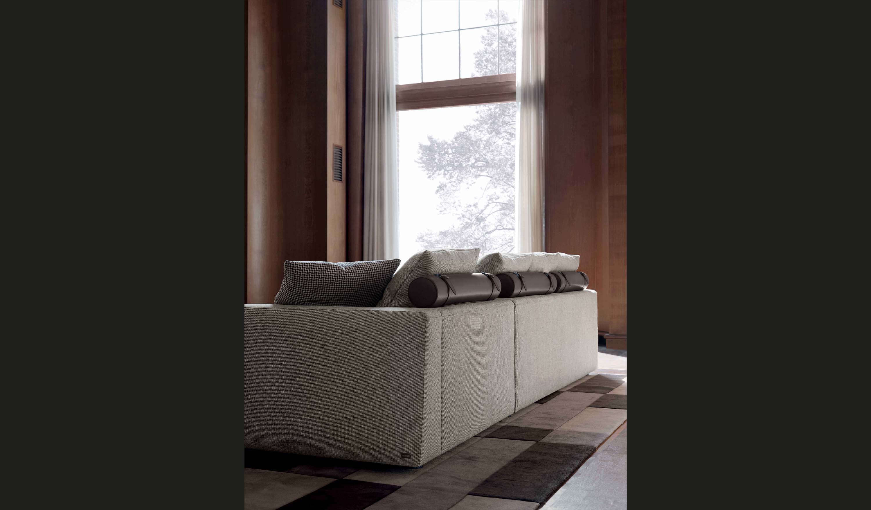 The upholstery is crafted from high quality materials: the seat cushions are padded with polyurethane of varying densities, topped with a down cover, while the back cushions are stuffed entirely with down, ensuring enveloping comfort and a casual aesthetic that invites relaxation. The plush cushions enhance the softness and warmth of the design, making Liam II the ideal choice for those wishing to combine functionality, modularity, and a unique style that perfectly embodies the discreet luxury of Trussardi Casa.