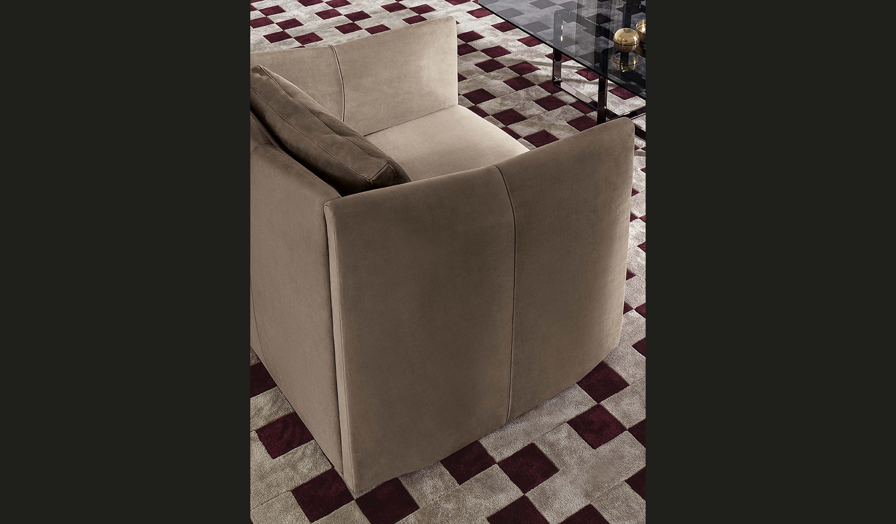 Maryl celebrates the excellence of Made in Italy craftsmanship, fusing design and fashion, functionality and comfort to perfection. There is no shortage of iconic sartorial details, such as the piping integrated into the armrest “epaulette”, a subtle element that enhances the elegance of the contours.