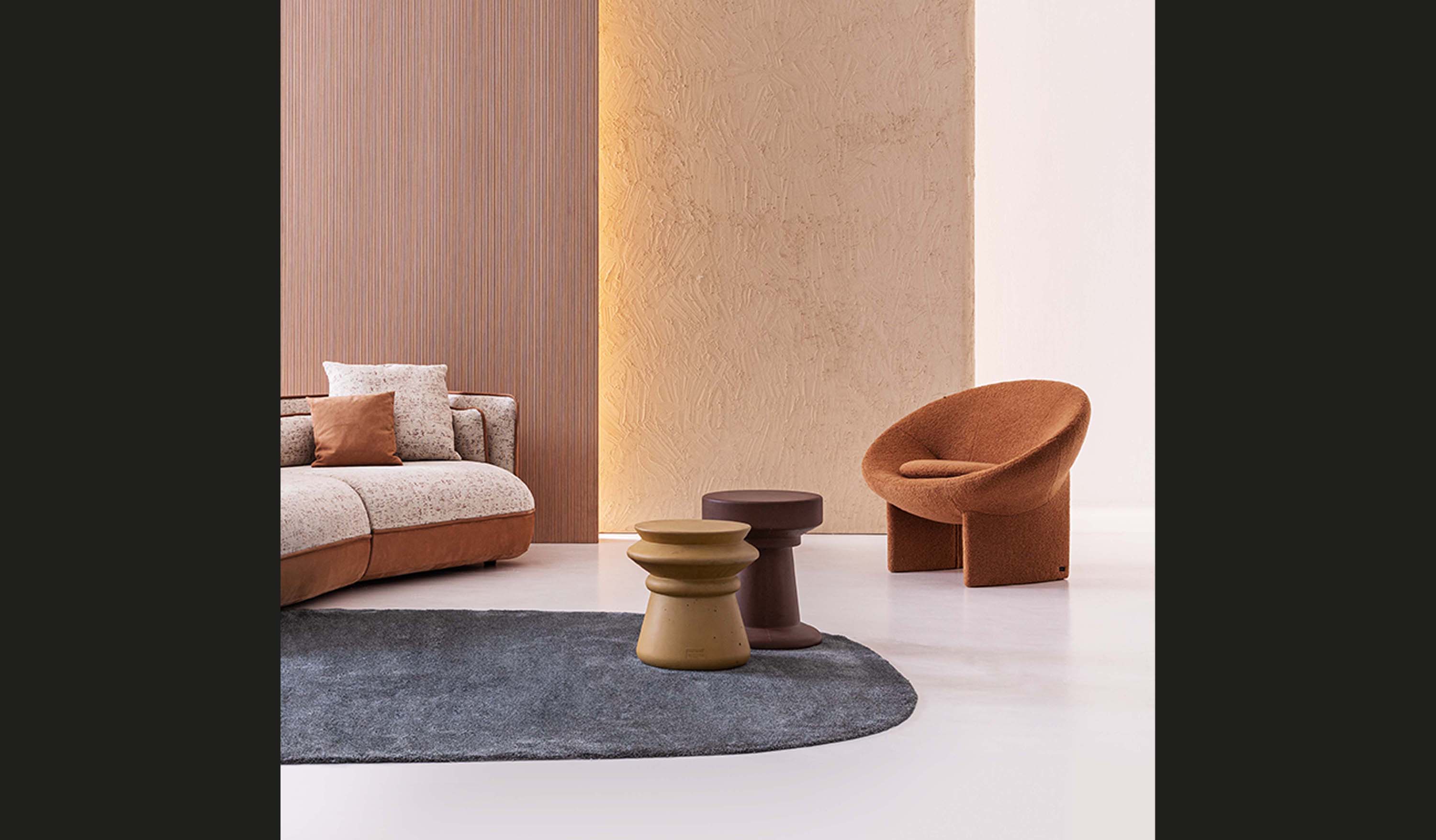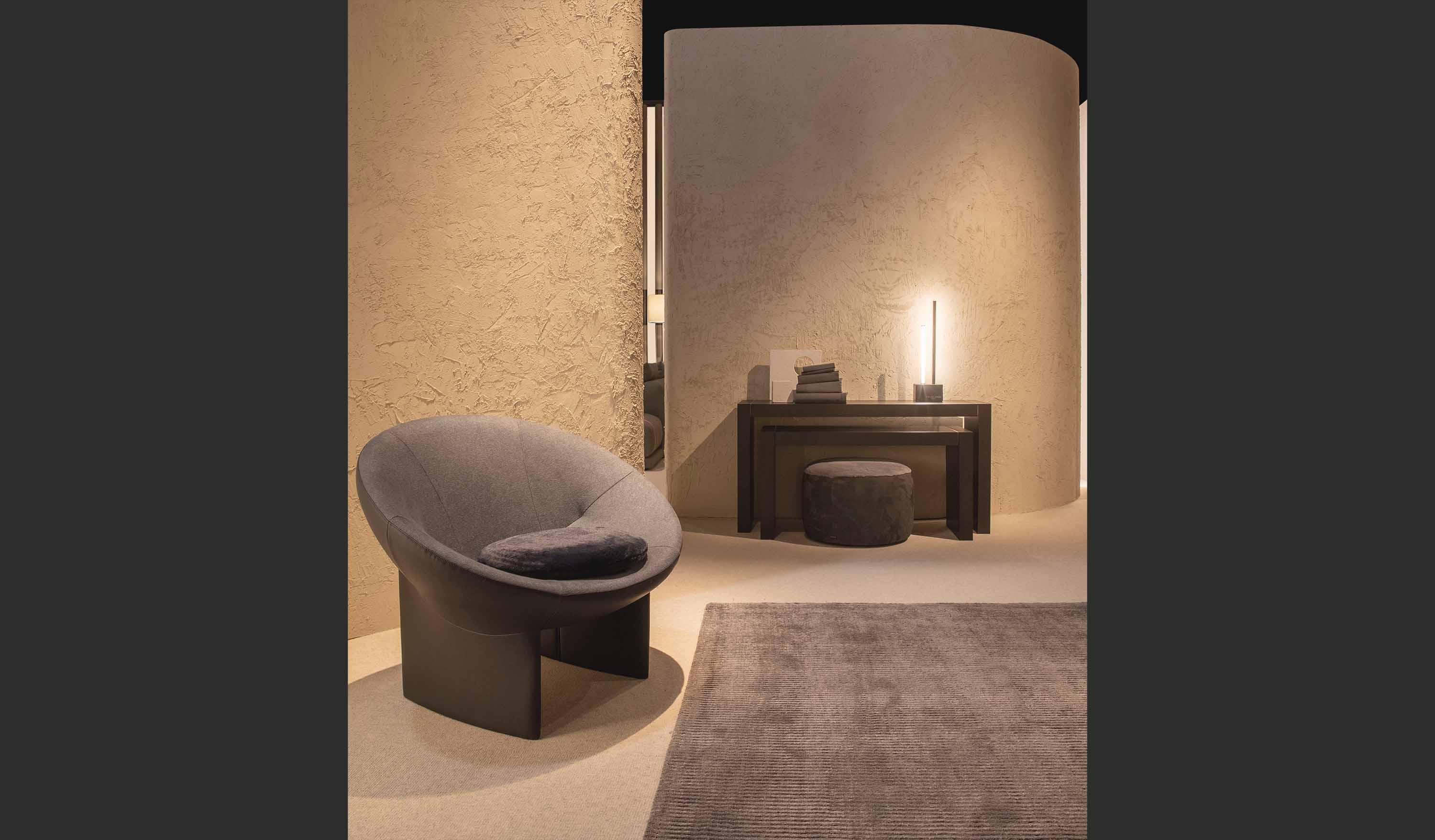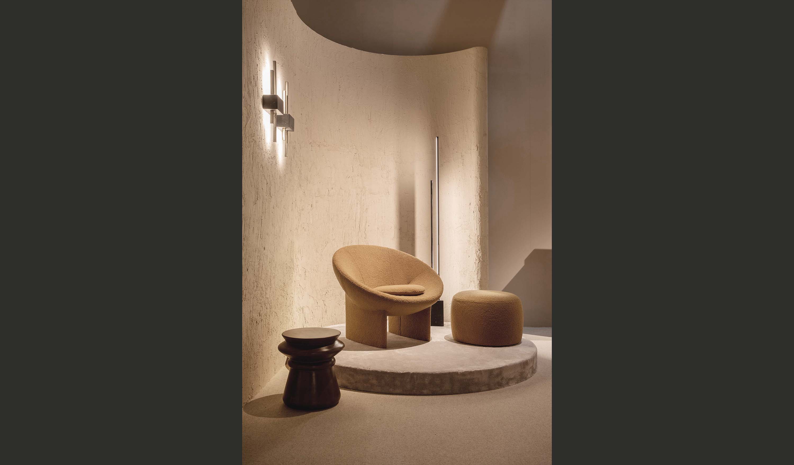 MEKONG offers a unique sensorial and spatial experience. More than a seat, it is a modern refuge reminiscent of the archetype of a shell, offering an inviting return to the origins. The designer’s inspiration is reflected in the harmonic dialogue between geometric and metaphysical abstraction, giving the armchair a cocooned appearance.