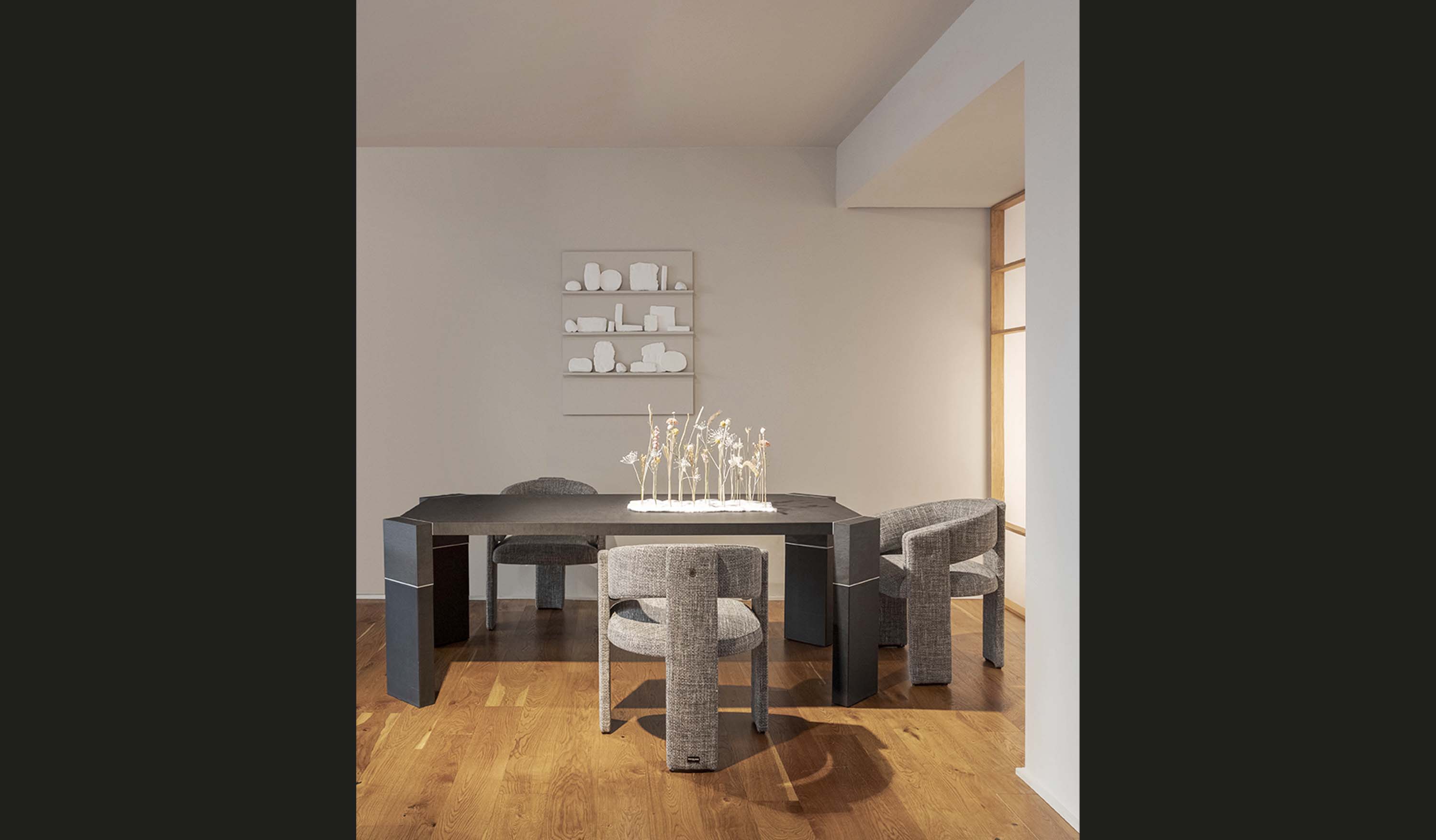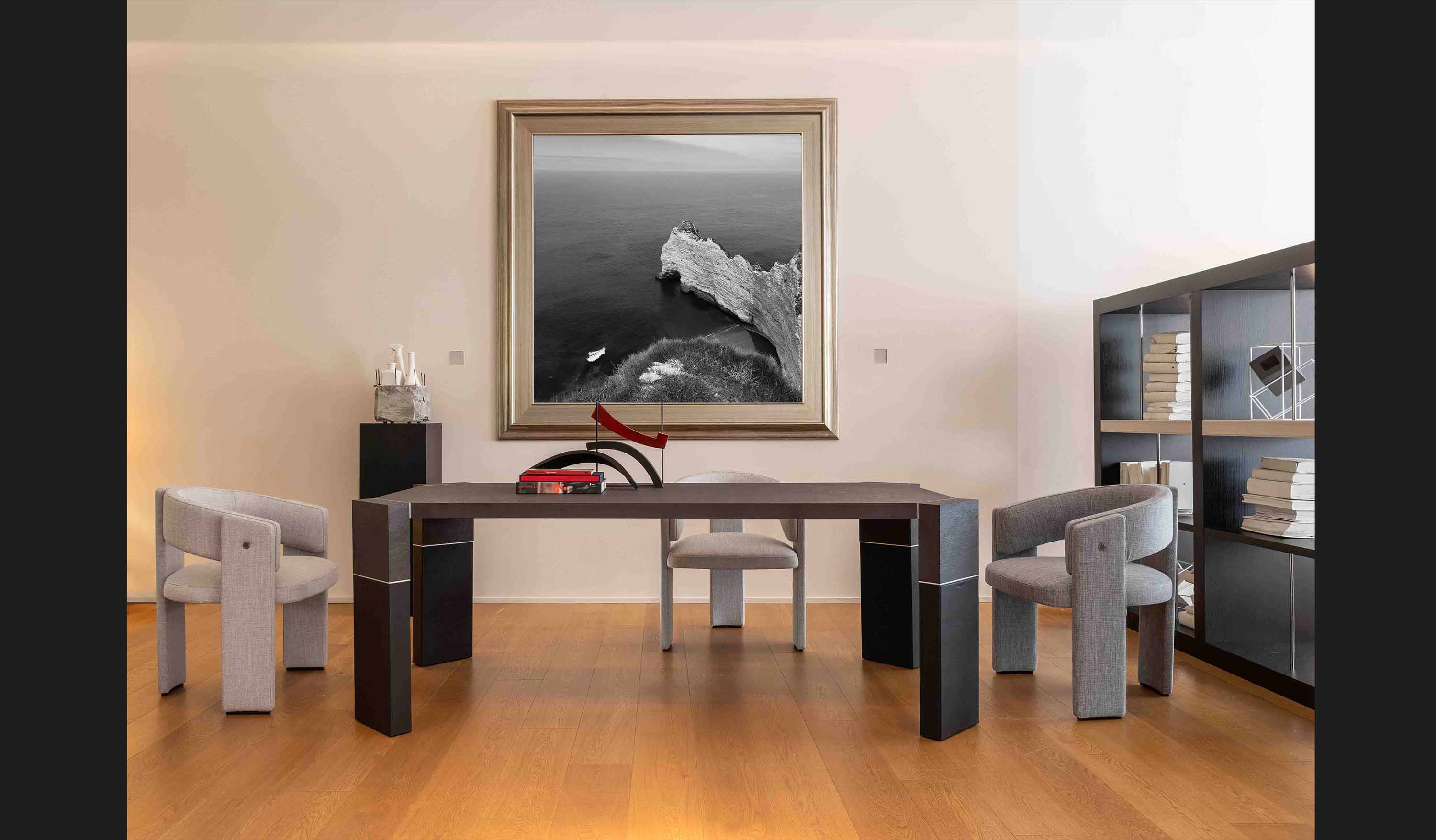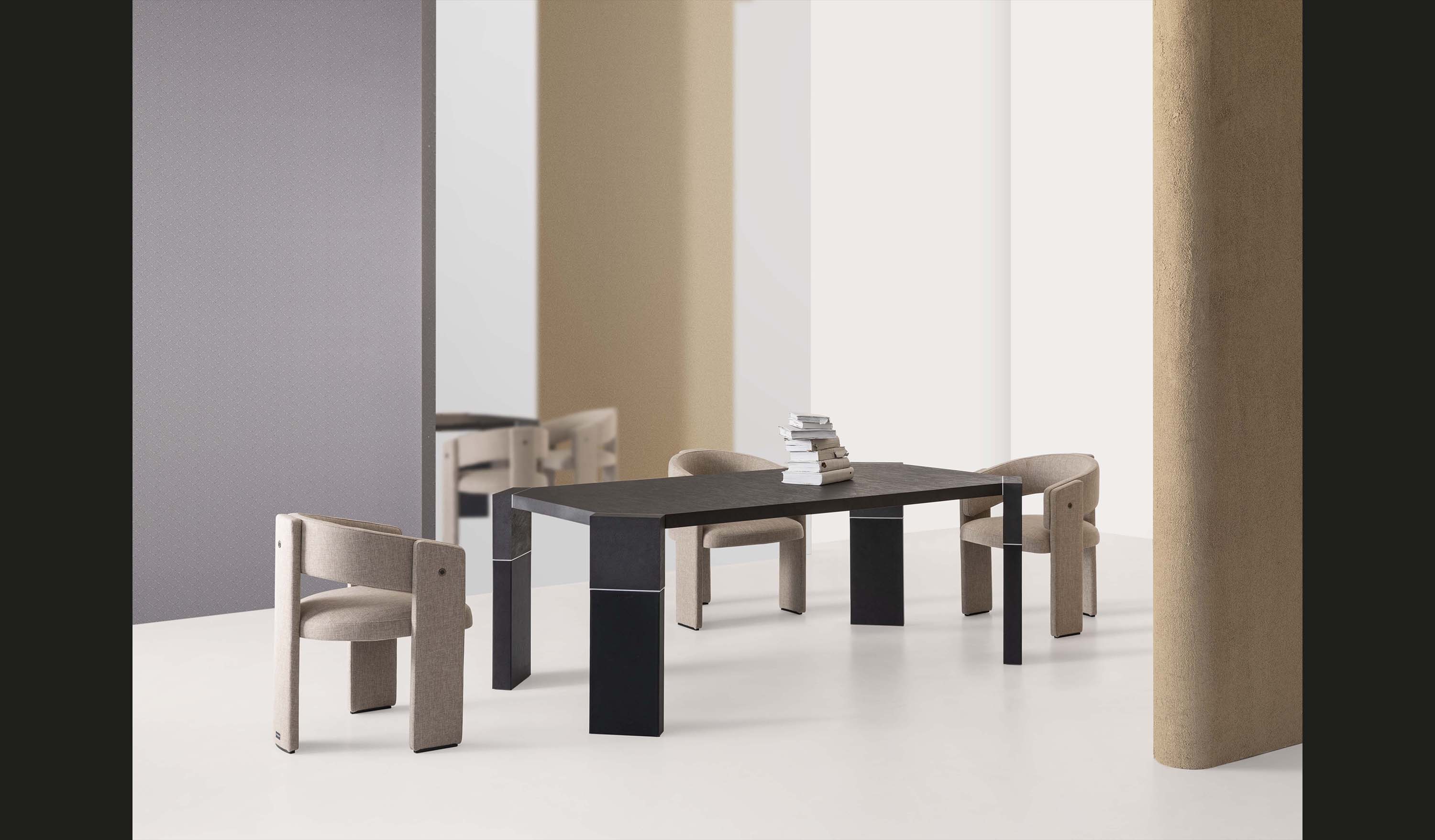 With Rock table, designed by Matteo Agati, Trussardi Casa explores new creative horizons. Here, the technological innovation of reuse is harmoniously interwoven with the designer's stylistic vision, prompting a sophisticated dialogue between sustainability and creativity.